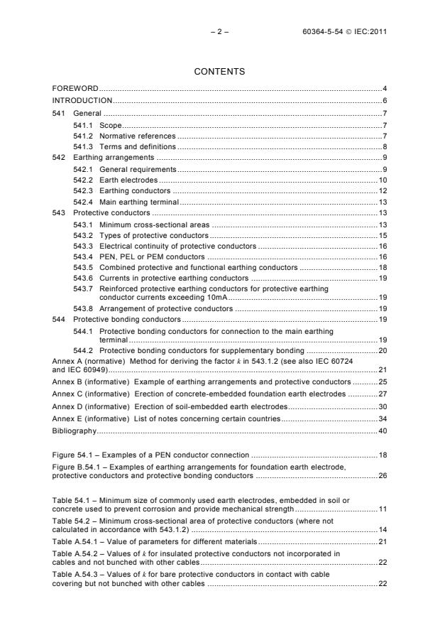 IEC 60364-5-54:2011 addresses the earthing arrangements and protective conductors including protective bonding conductors in order to satisfy the safety of the electrical installation. This third edition cancels and replaces the second edition, published in 2002, and constitutes a technical revision. The main changes with respect to the previous edition are listed below: