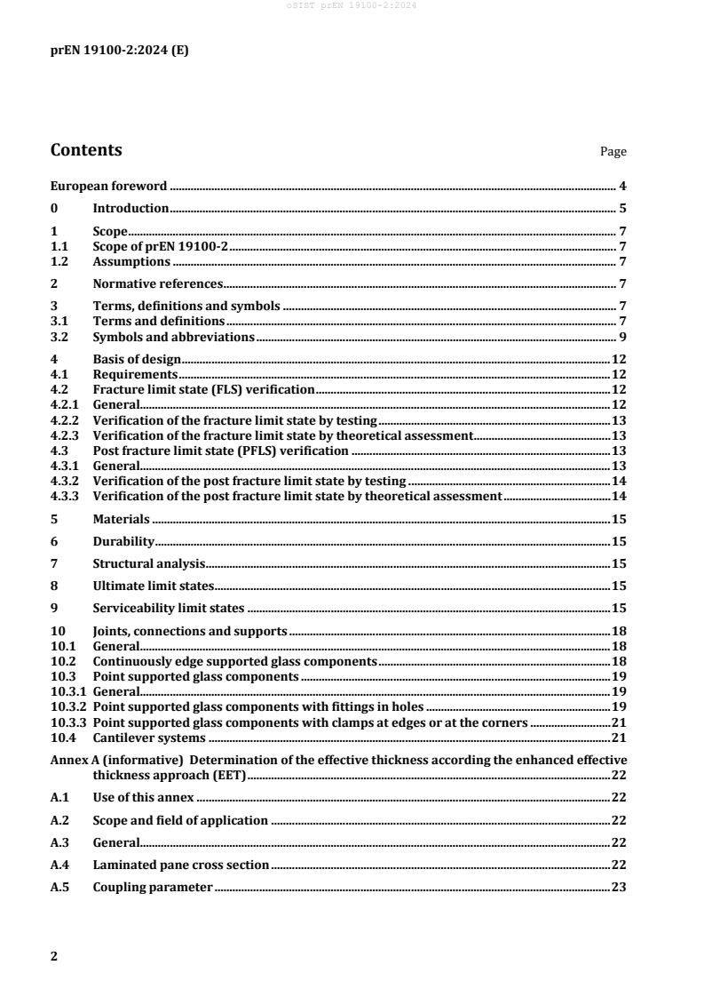 (1) prEN 19100-2 gives basic structural design rules for glass components and assemblies primarily subjected to out-of-plane loading.