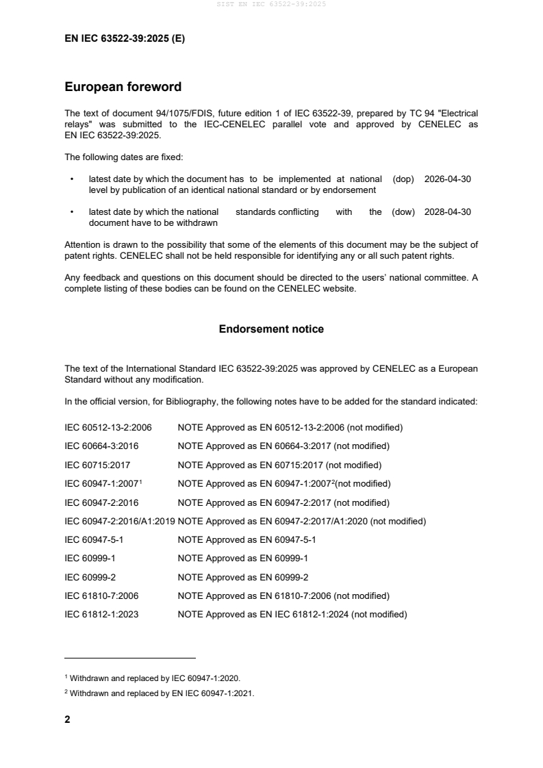 Keywords: EN IEC 63522-39:2025, IEC 63522-39, insertion and withdrawal force, relay testing, relay socket test, flat quickconnect terminations, eye lug connectors, electrical relays, CENELEC, CLC.
