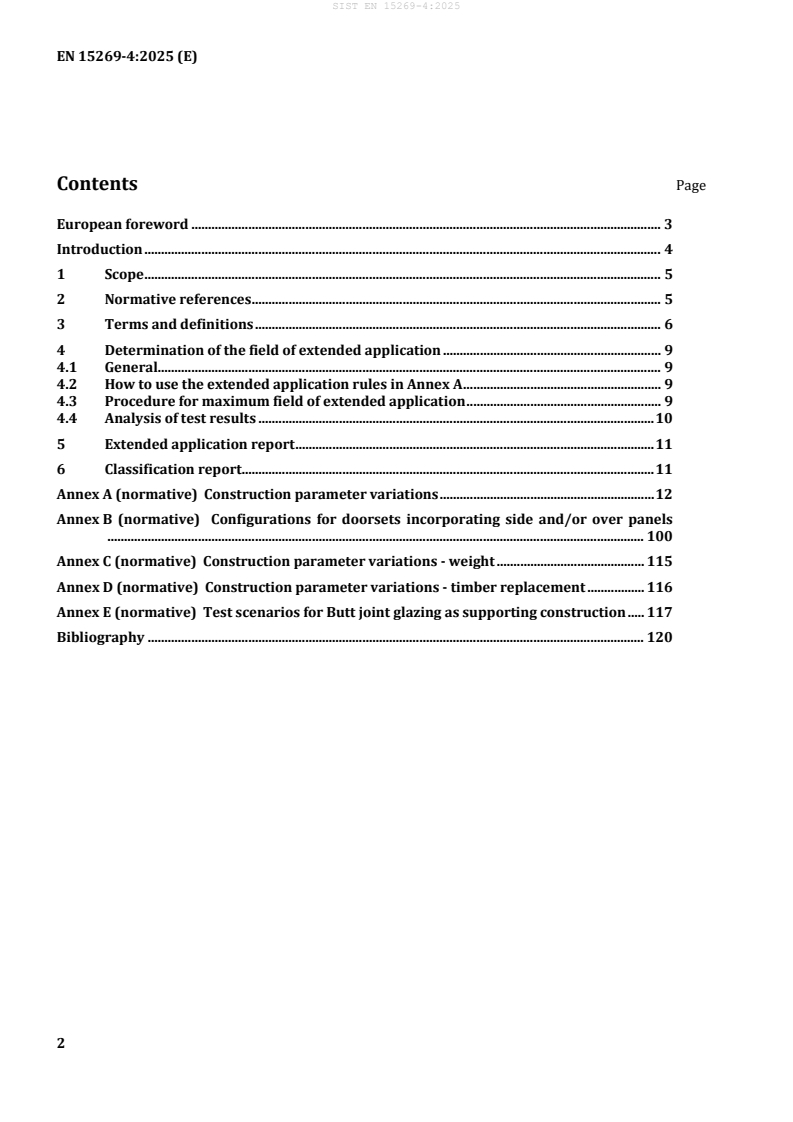 The SIST EN 15269-4:2025 standard presents a comprehensive framework for the extended application of test results regarding fire resistance and smoke control specifically tailored for hinged and pivoted glass doorsets. Its scope encompasses not only the doors themselves but also their assemblies, effectively integrating various components necessary for comprehensive fire safety performance evaluations. One of the standard's primary strengths lies in its detailed methodology for extending test result applications derived from established fire resistance tests, such as EN 1634-1 and EN 1634-3. By allowing for the extension of these results to cover an extensive range of classifications-including integrity (E), combined integrity and radiation (EW), and integrity with insulation (EI1 or EI2)-the standard provides significant flexibility in the assessment of fire-resistant properties of glass doorsets. Furthermore, the incorporation of smoke control classifications, both ambient temperature (Sa) and medium temperature (S200), alongside the quantification of durability and closing capabilities (C0 – C5), offers a holistic approach to understanding the performance of these crucial building elements. This is particularly relevant in modern architecture where the aesthetic and functional characteristics of doorsets often involve glazed elements, transom panels, and specialized building hardware. The standard also addresses practical applications involving various finishes, seals, and supporting constructions, making it adaptable to a wide range of design considerations. This comprehensive approach not only ensures safety compliance but also enhances the utility of doorsets in residential and commercial properties alike, thereby reinforcing the relevance of SIST EN 15269-4:2025 in contemporary building standards. In summary, SIST EN 15269-4:2025 stands out as a vital regulatory framework providing vital insights and methodologies for extending fire safety evaluations. It is an indispensable resource for architects, builders, and safety inspectors aiming to meet stringent fire resistance and smoke control requirements within the evolving landscape of architectural design.