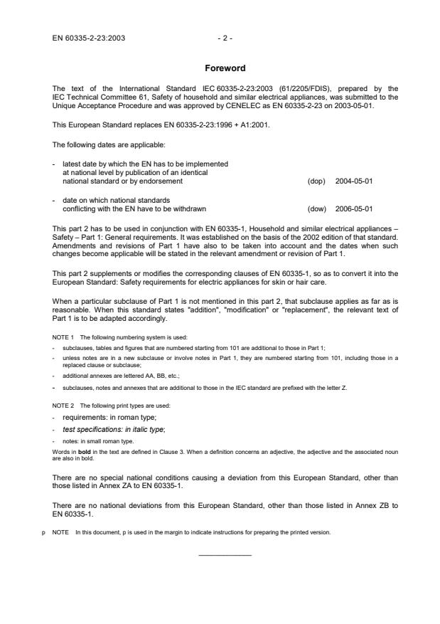 This European Standard replaces EN 60335-2-23:1996 + A1:2001.