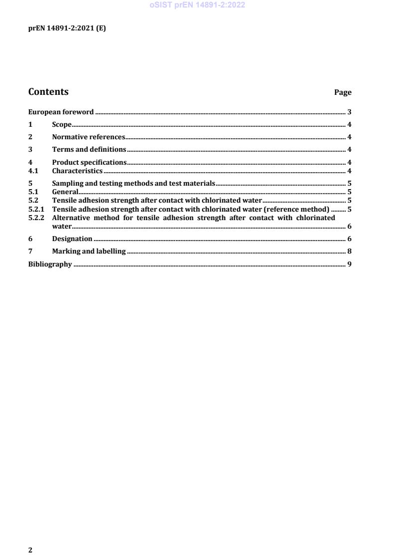 5.2 Tensile adhesion strength after contact with chlorinated water . 5