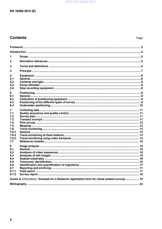 Example for a fieldwork registration form for visual seabed surveys . 19Bibliography . 22 SIST EN 16260:2013