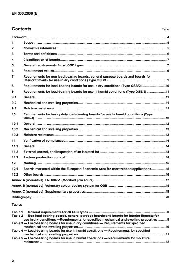 Tables Table 1 — General requirements for all OSB types.8 Table 2 — Non load-bearing boards, general purpose boards and boards for interior fitments for