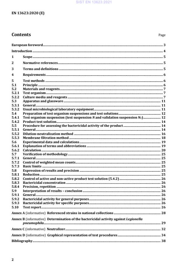 SIST EN 13623:2021 is a standard published by the Slovenian Institute for Standardization (SIST). Its full title is "Chemical disinfectants and antiseptics - Quantitative suspension test for the evaluation of bactericidal activity against Legionella of chemical disinfectants for aqueous systems - Test method and requirements (phase 2, step 1)". This standard covers: This document specifies a test method and the minimum requirements for bactericidal activity of chemical disinfectant products intended to be used for treatment in aqueous systems against Legionella pneumophila that form a homogeneous, physically stable preparation when diluted with buffered ferrous hard water or hard water. Whenever Legionella pneumophila poses a risk to human health, this method is suitable for water used in cooling towers and water for general purposes, like spas, pools, showers and other uses. The method is not suitable for electro-chemical disinfection. The document applies to products used as a single application shock treatment in order to kill Legionella pneumophila. It is not suitable for the evaluation of those products that are dosed continuously into water systems to control the growth of Legionella pneumophila. NOTE 1 The method described is intended to determine the activity of commercial formulations or active substances under the conditions in which they are used. NOTE 2 This method corresponds to a phase 2 step 1 test. NOTE 3 This method does not take into account the fact that Legionella pneumophila is often found in cells of amoebae and/or biofilms and that thereby a product’s activity against the bacteria may be reduced. EN 14885 specifies in detail the relationship of the various tests to one another and to "use recommendation".