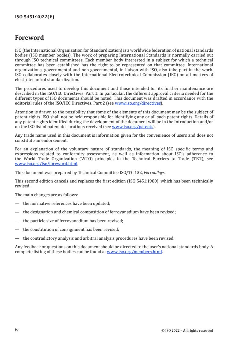 ferrovanadium traded internationally. The requirements of the previous edition (ISO 5451:1980) such