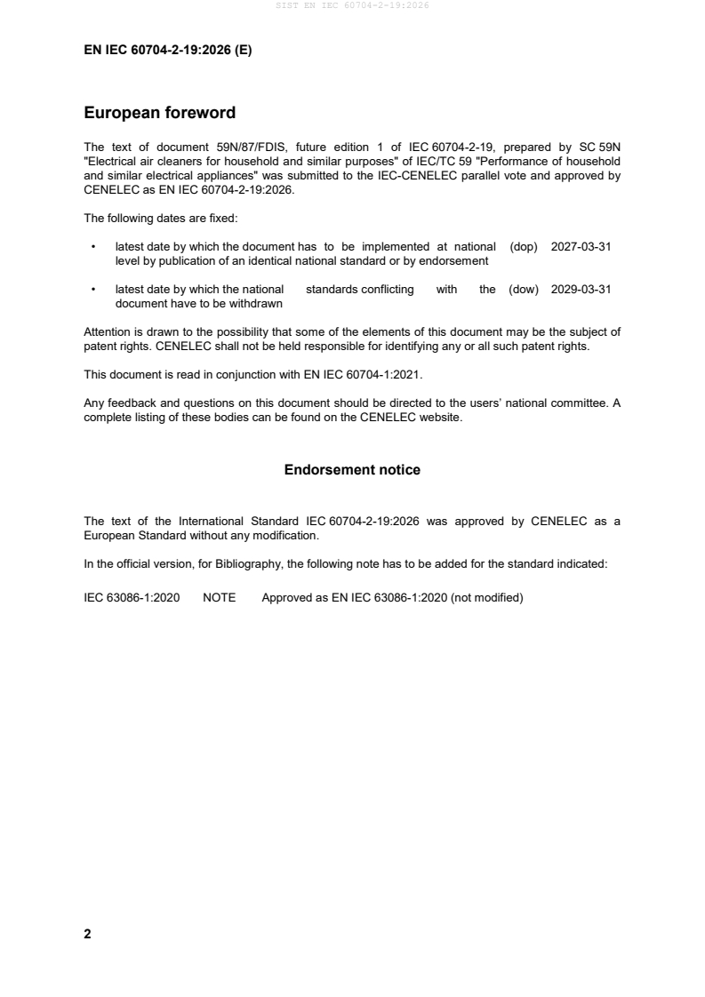 Ta del 2-19 je namenjen uporabi v povezavi z IEC 60704-1:2021, Gospodinjski in podobni električni aparati - Preskusni kodeks za določanje hrupa, ki ga prenaša zrak - 1. del: Splošne zahteve.