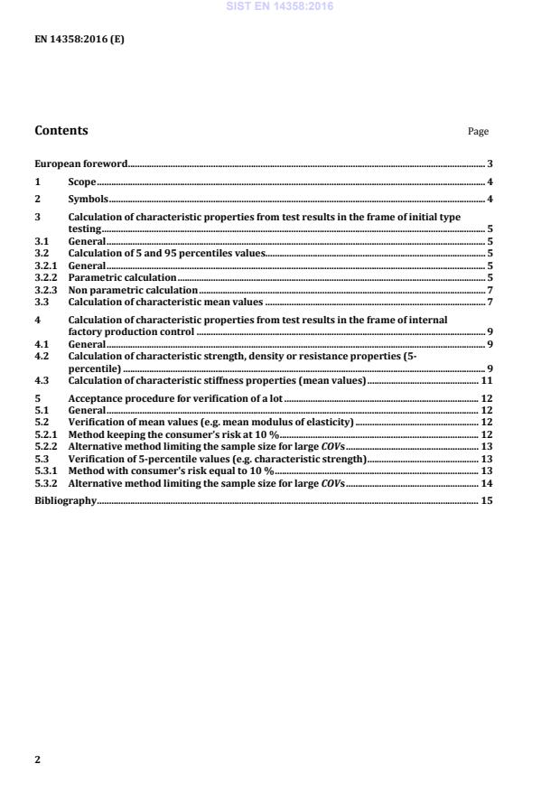 SIST EN 14358:2016 is a standard published by the Slovenian Institute for Standardization (SIST). Its full title is "Timber structures - Calculation and verification of characteristic values". This standard covers: This standard gives statistical methods for the determination of characteristic values from test results on a sample drawn from a clearly defined reference population of e.g. solid wood, fasteners, connectors and wood-based products. The characteristic value is an estimate of the property of the reference population and can be based on a 5-percentile value of strength, resistance or density as well as on a mean value for stiffness. Parametric methods are given for the determination of lower and upper 5-percentiles. The upper 5-percentile is the 95-percentile. This standard is suitable for use with any structural product in the frame of type testing as well as factory production control. Sampling is not covered by this document, but reference is made to the relevant product standards. This standard also provides the acceptance procedure for verification of a lot. Depending on the product, characteristic values determined in accordance with this standard may be used directly or may need additional adjustments specified in the relevant product standards. Note: For example, in the case of solid timber, specific adjustment factors for calculation of characteristic values are given in EN 384.