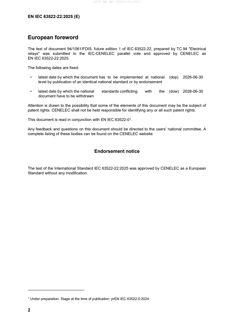 relays" was submitted to the IEC-CENELEC parallel vote and approved by CENELEC as