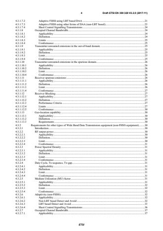 Keywords: 2.4 GHz, wideband data transmission, harmonised standard, spectrum access, FHSS, adaptive FHSS, LBT, DAA, RF output power, emissions, conformance.