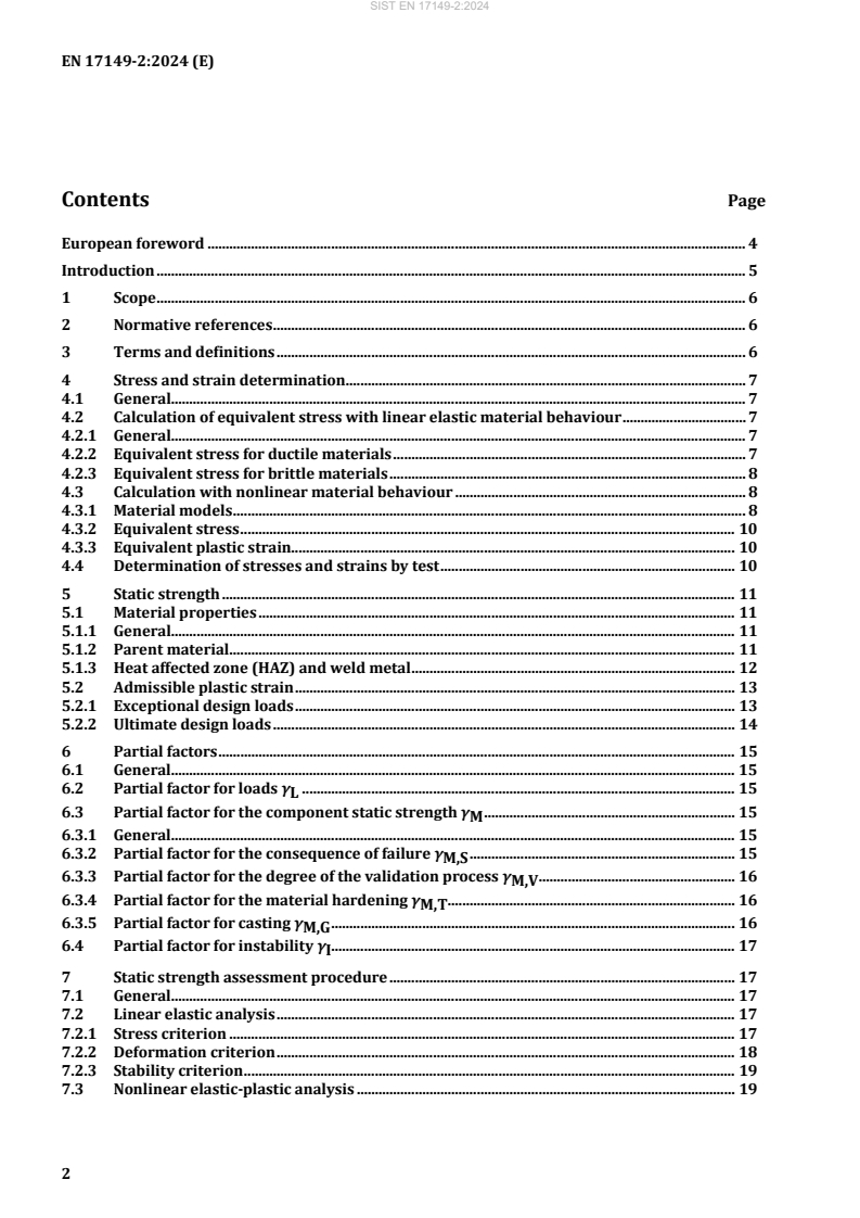- Partial factors: Sets partial factors for loads, component static strength (including consequence of failure, validation degree, material hardening, casting), and instability to be used in safety evaluations.