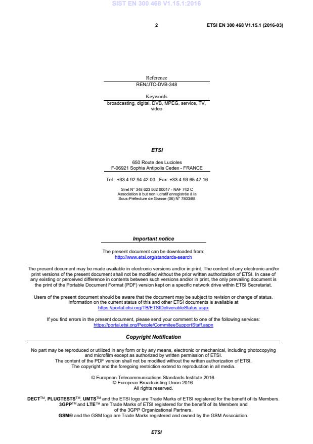 2 ETSI EN 300 468 V1.15.1 (2016-03)