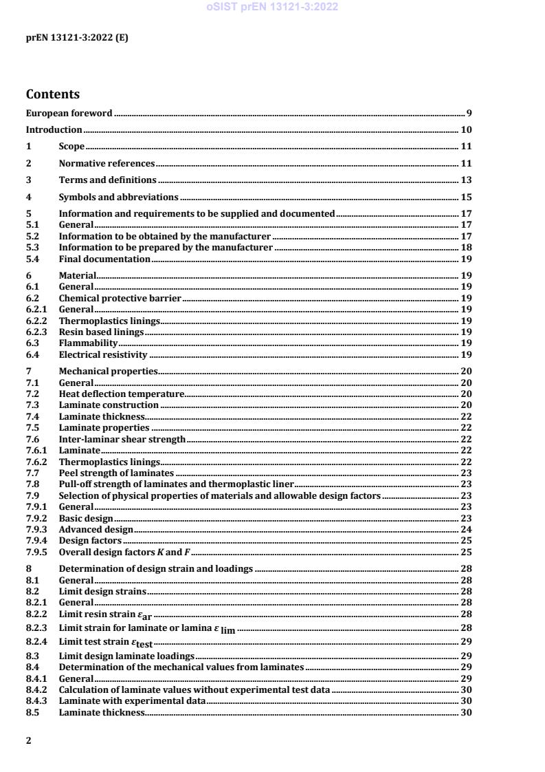 oSIST prEN 13121-3:2022 is a draft published by the Slovenian Institute for Standardization (SIST). Its full title is "GRP tanks and vessels for use above ground - Part 3: Design and workmanship". This standard covers: This European Standard gives requirements for the design, fabrication, inspection, testing and verification of GRP tanks and vessels with or without thermoplastics lining for storage or processing of fluids, factory made or site built, non-pressurized or pressurized up to 10 bar, for use above ground. Further requirements are presented in normative Annex G. The terms vessels and tanks as used in this part of EN 13121 include branches up to the point of connection to pipe work or other equipment by bolting and supports, brackets or other attachments bonded directly to the shell. This part of EN 13121 covers vessels and tanks subject to temperatures between - 40 °C and 120 °C. Excluded from this part of EN 13121 are: - tanks and vessels for the transport of fluids; - underground storage tanks; - spherical vessels; - vessels and tanks of irregular shape; - tanks and vessels with double containment where the double wall is considered structural; - tanks and vessels which are subject to the risk of explosion, or failure of which may cause an emission of radioactivity; - specification for fibre reinforced cisterns of one piece and sectional construction for the storage, above ground, of cold water (see EN 13280).