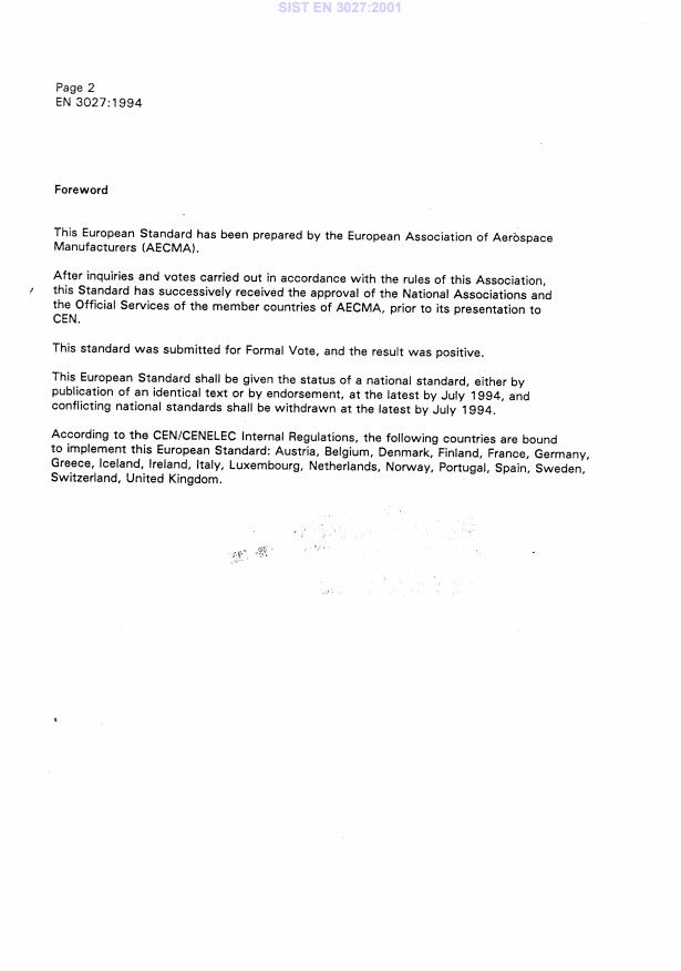 - Other CEN EN aerospace standards covering materials, coatings, and test methods for corrosion and lubrication may be used alongside SIST EN 3027:2001 to form a complete qualification package.