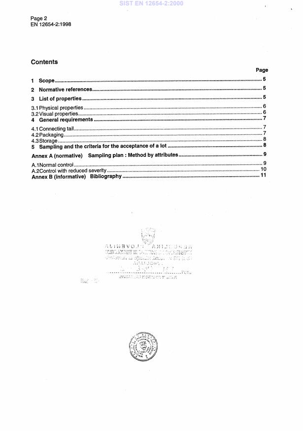 - Users should consult the full EN 12654-2:1998 text for authoritative test procedures, sampling rules and exact requirement tables.
