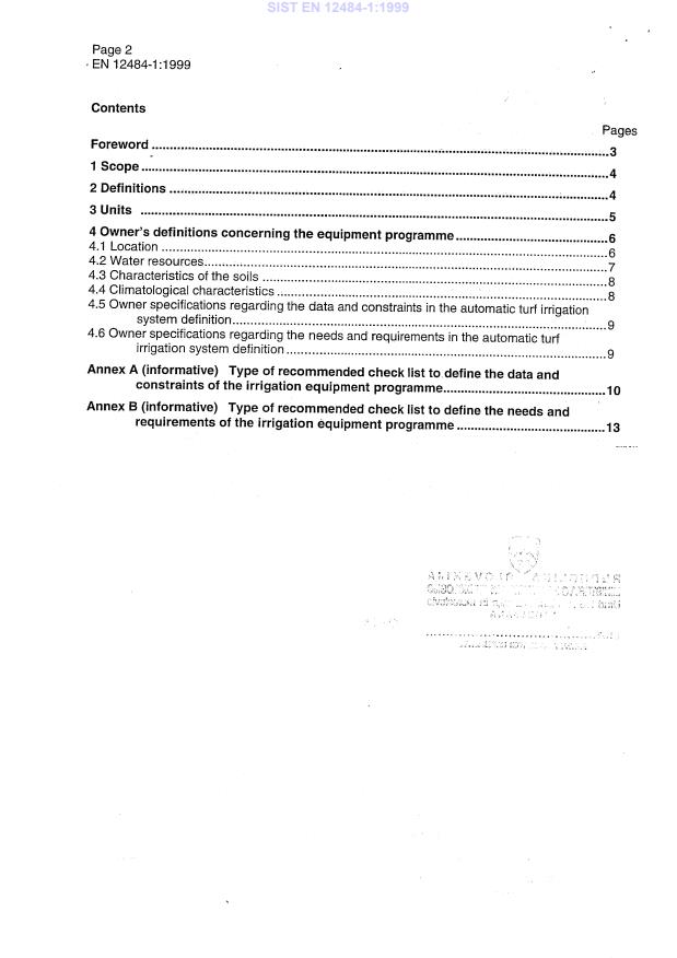 Keywords: EN 12484-1, automatic turf irrigation systems, irrigation design, owner programme, golf course irrigation, irrigation equipment sizing, CEN.
