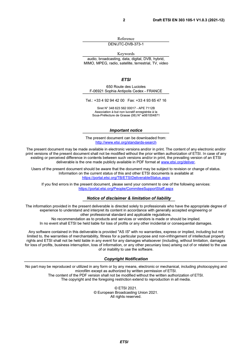 2 Draft ETSI EN 303 105-1 V1.0.3 (2021-12)