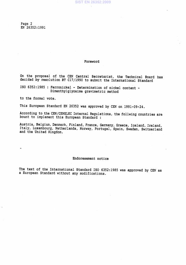 Keywords: EN 26352:1991, ISO 6352:1985, ferronickel, nickel determination, dimethylglyoxime gravimetric method, atomic absorption, gravimetric analysis, repeatability, reproducibility, ferroalloys.