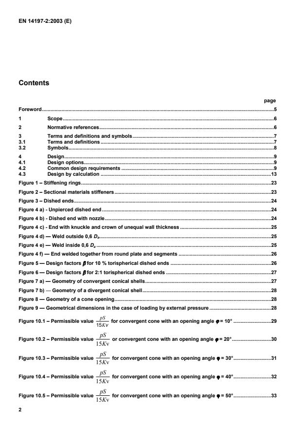 (corner joint) with an opening angle jj = 10° to70°.36Figure 11 — Opening factor CA for flat ends and plates without additional marginal moment.37Figure 12 – Design factors for unstayed circular flat ends and plates.39Figure 13 — Design factor CE for rectangular or elliptical flat plates.40Figure 14 — Increased thickness of a cylindrical shell.41Figure 15 — Increased thickness of a conical shell.41Figure 16 — Set-on reinforcement ring.41Figure 17 — Set-in reinforcement ring.41Figure 18 — Pad reinforcement.42Figure 19 — Nozzle reinforcement.42Figure 20 — Necked out opening.42Figure 21 — Pad.43Figure 22 — Calculation scheme for cylindrical shells.43Figure 23 — Calculation scheme for spherical shells.44Figure 24 — Calculation scheme for adjacent nozzles or in a longitudinal direction of a cylinder.44Figure 25 — Openings between longitudinal and circumferential direction.45Figure 26 — Calculation scheme for adjacent nozzles in a sphere or in a circumferential directionof a cylinder.455Fabrication.465.1General.465.2Cutting.465.3Cold forming.465.4Hot forming.475.5Manufacturing tolerances.48Figure 27 a) — Seams which do not require a taper.49Figure 27 b) — Seams which do require a taper.49Figure 27 — Plate alignment.49Figure 28 — Gauge details.515.6Welding.515.7Non-welded permanent joints.526Inspection and testing.536.1Quality