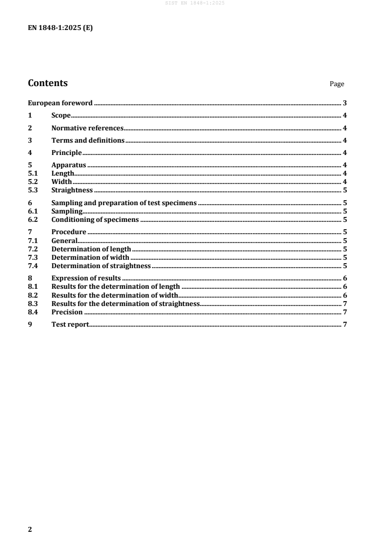 Keywords: SIST EN 1848-1:2025, bitumen sheets, roof waterproofing, length measurement, width measurement, straightness determination, flexible waterproofing sheets, CEN standards, dimensional testing, waterproofing quality control, roofing materials testing.