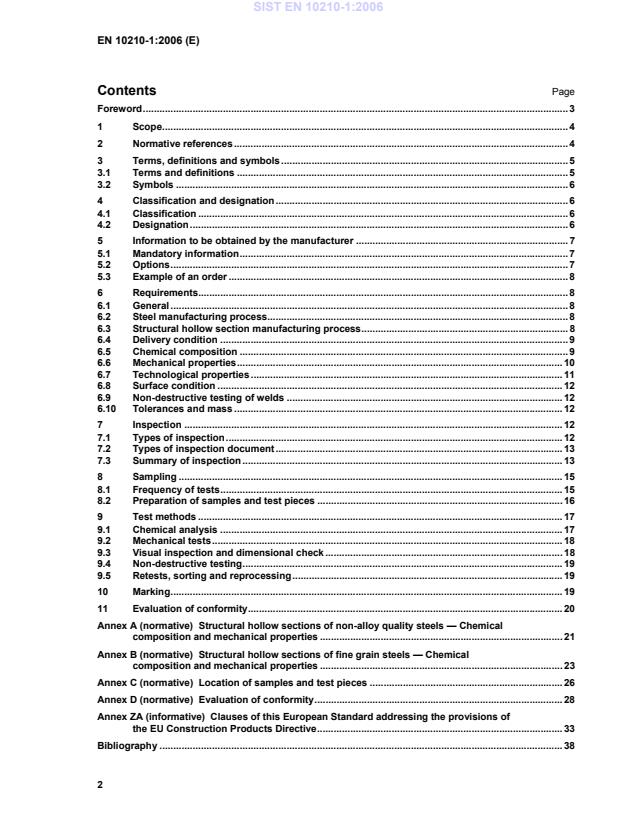 Clauses of this European Standard addressing the provisions of the EU Construction Products Directive.33 Bibliography.38 SIST EN 10210-1:2006