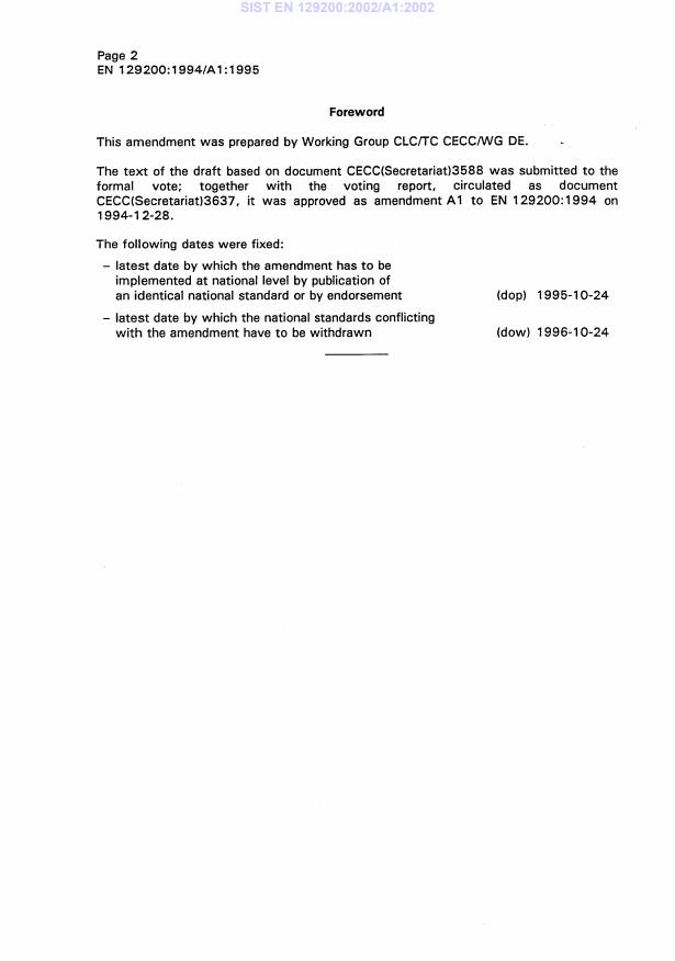 Ta slovenski standard je istoveten z: EN 129200:1994/A1:1995