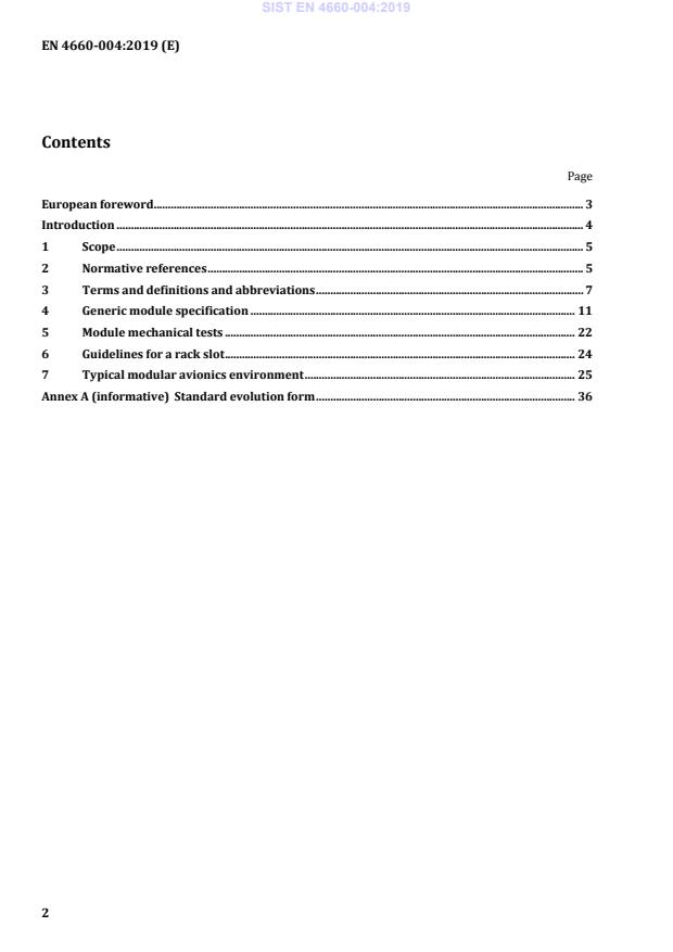 SIST EN 4660-004:2019 is a standard published by the Slovenian Institute for Standardization (SIST). Its full title is "Aerospace series - Modular and open avionics architectures - Part 004: Packaging". This standard covers: This European standard establishes uniform requirements for Packaging for the Common Functional Modules (CFM) within an Integrated Modular Avionic (IMA) system. It comprises the module physical properties and the Module Physical Interface (MPI) definitions together with guidelines for IMA rack and the operational environment. The characteristics addressed by the Packaging Standard are: Interchangeability: For a given cooling method all modules conforming to the packaging standard will function correctly when inserted into any rack slot conforming to the standard for the cooling method. All modules conforming to the Module Physical Interface (MPI) definitions for connector, IED and cooling interface will function correctly when inserted into any rack slot conforming to the same MPI definition. Maintainability: All modules are easily removable at first line. No special tools required at first line. No manual adjustment is necessary when installing modules. No tool is required for installation or removal of the modules. Mechanical keying is provided that prevents insertion of a module into a rack slot that may cause an unsafe condition. The Module Physical Interface definition, contained within this standard, does not include the properties of the signalling used in the optical interface (e. g. wavelength). These are covered in EN 4660-003.