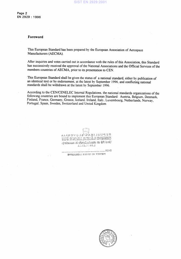 - EN 2929 belongs to the CEN aerospace series covering fasteners. The Slovenian adoption is SIST EN 2929:2001 (identical text). For full implementation, users typically consult complementary standards on testing, material certification and dimensional tolerances relevant to aerospace fasteners.