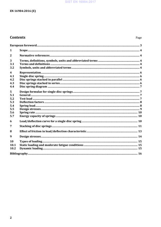 SIST EN 16984:2017 is a standard published by the Slovenian Institute for Standardization (SIST). Its full title is "Disc springs - Calculation". This standard covers: This standard specifies design criteria and features of disc springs, whether as single disc springs or as stacks of disc springs. It includes the definition of relevant concepts as well as design formulae, and covers the fatigue life of such springs.