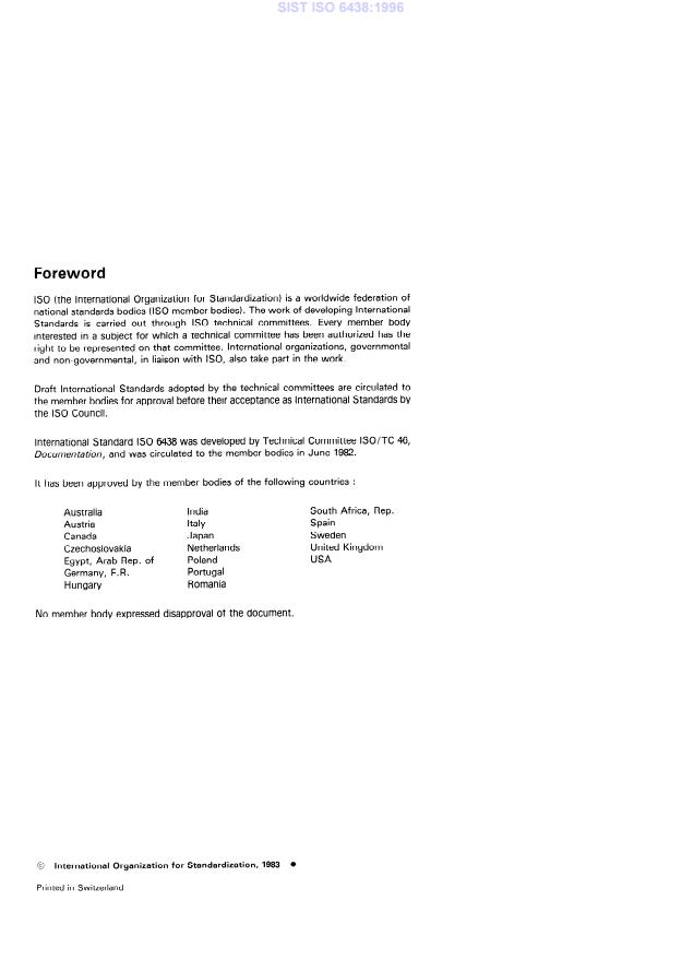 International Standard ISO 6438 was developed by Technical Committee ISO/TC 46,