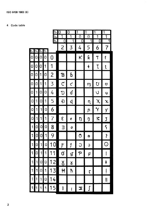 Contains a set of 60 African graphic characters with their coded representations. Consists of a code table, a legend giving for each character its name and its use, and explanatory notes. The list of African languages in Annex A is for information only and is not part of this document.