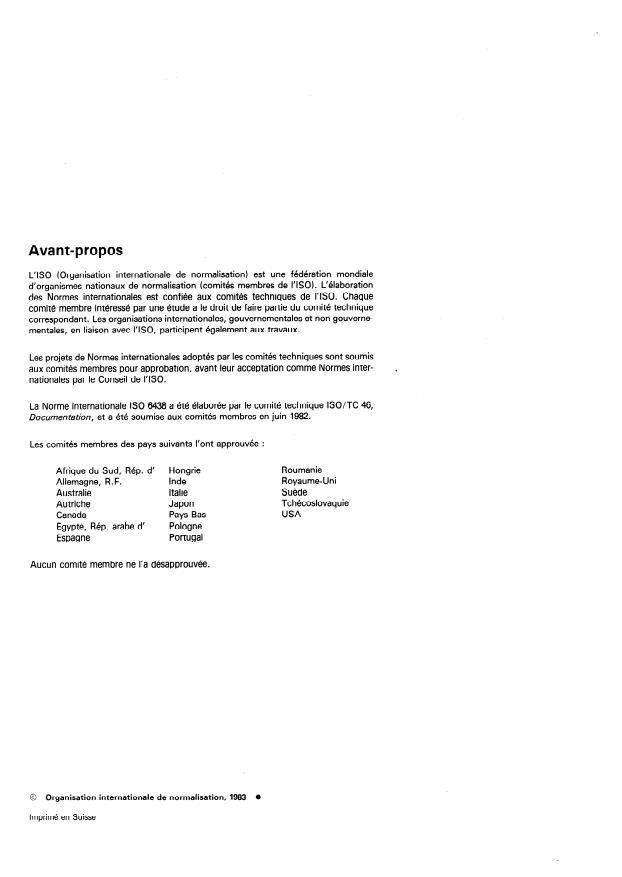 La Norme internationale ISO 6438 a été élaborée par le comité technique ISO/TC 46,