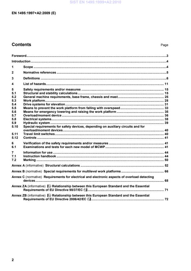 #Relationship between this European Standard and the Essential Requirements of EU Directive 2006/42/EC$ . 72 SIST EN 1495:1999+A2:2010
