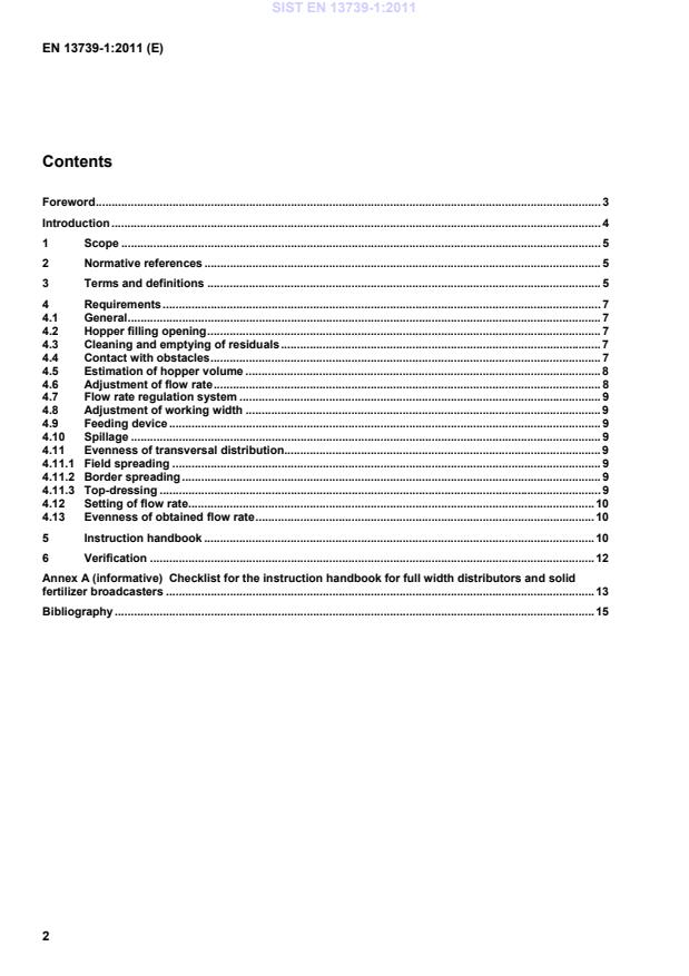 Checklist for the instruction handbook for full width distributors and solid fertilizer broadcasters . 13Bibliography . 15 SIST EN 13739-1:2011