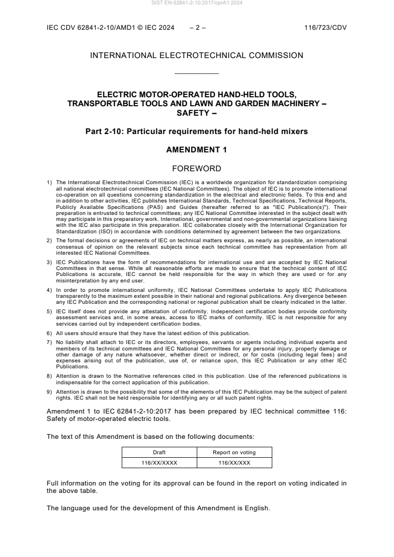 IEC CDV 62841-2-10/AMD1 © IEC 2024 – 2 – 116/723/CDV