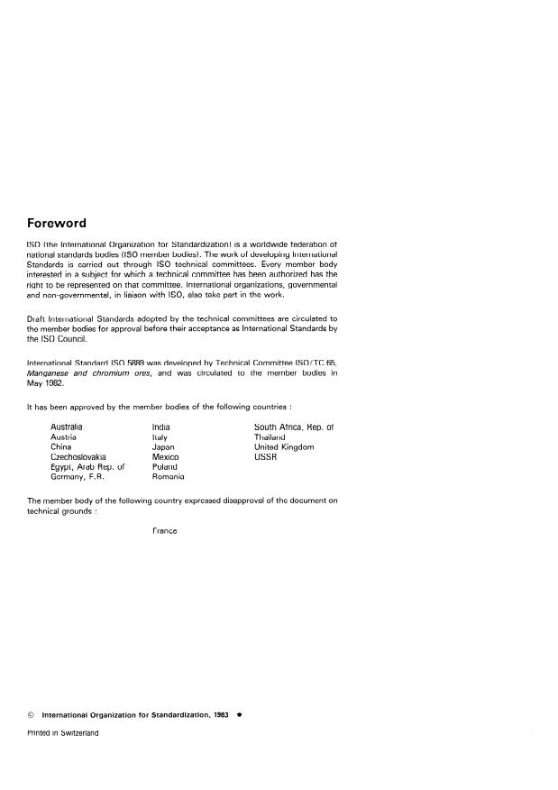 Keywords: ISO 5889:1983, manganese ores, flame atomic absorption, AAS, aluminium, copper, lead, zinc, calibration, sampling.