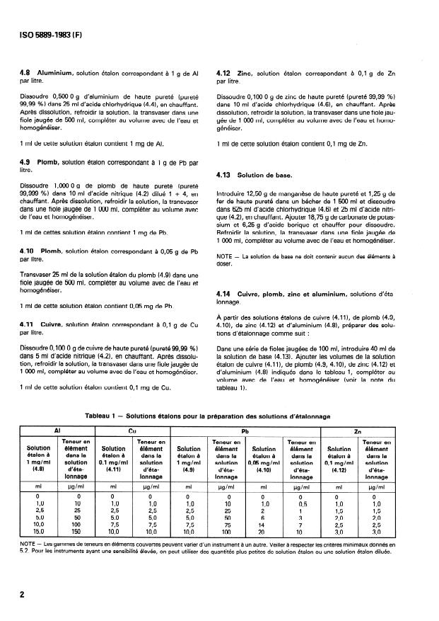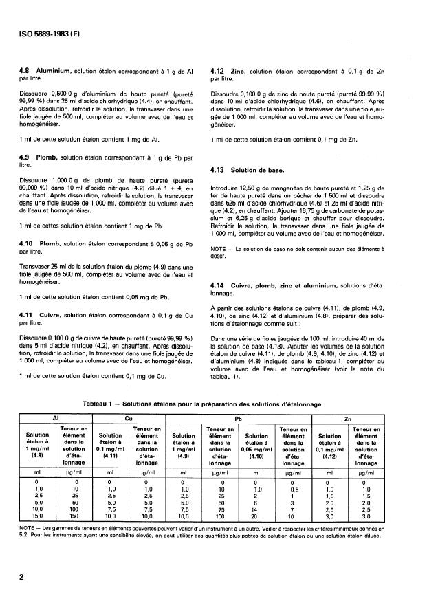 4.14 Cuivre, plomb, zinc et aluminium, solutions d’éta-