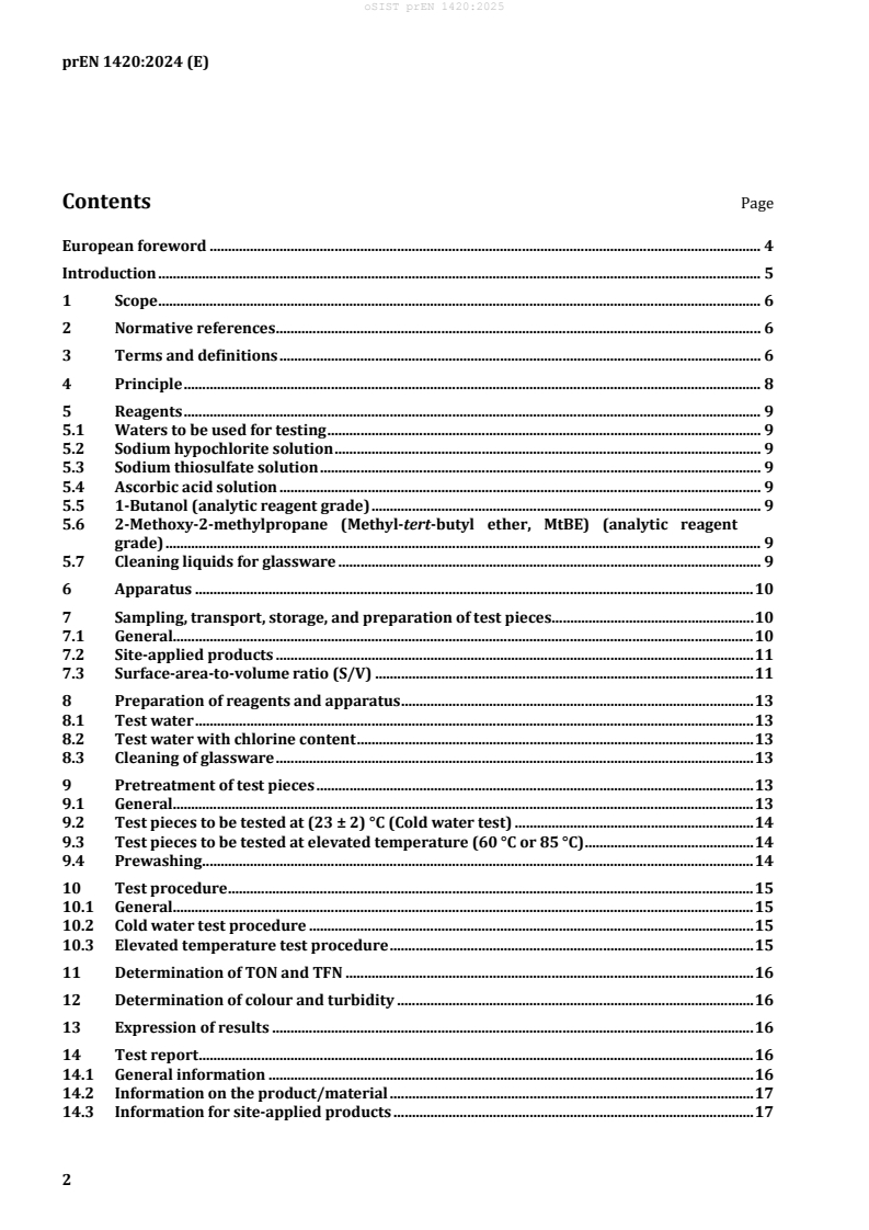 The standard oSIST prEN 1420:2025, developed by CEN, outlines a comprehensive procedure for assessing the influence of organic materials on water intended for human consumption. Specifically, it details the determination of odour, flavour, colour, and turbidity in water within piping and storage systems made from or coated with organic materials. This includes pipes, tanks, reservoirs, fittings, and related ancillaries, both factory-made and site-applied.
