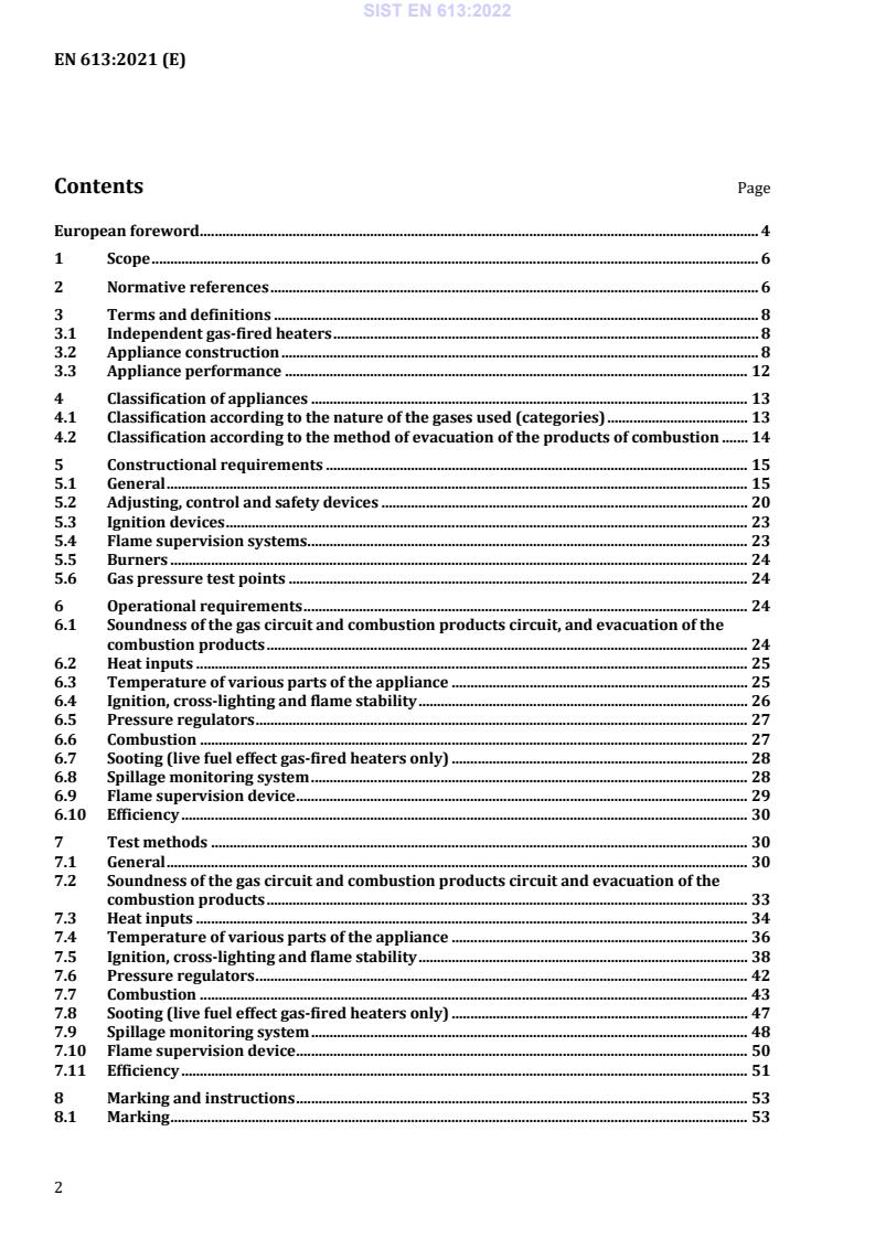 SIST EN 613:2022 (EN 613:2021) sets the requirements and test methods for independent closed-fronted gas-fired heaters of types B11 (including B11AS, B11BS, B11CS) and C11, C31, C91. The standard covers construction, safety, marking and the rational use of energy for appliances that: