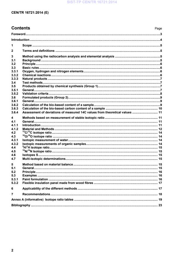 SIST-TP CEN/TR 16721:2014 is a technical report published by the Slovenian Institute for Standardization (SIST). Its full title is "Bio-based products - Overview of methods to determine the bio-based content". This standard covers: This Technical Report gives an overview of methods which can be used for the determination of the bio-based content of solid, liquid and gaseous products. It describes more specifically: a) a method using the radiocarbon analysis and elemental analysis: this method is based on a statement and a verification of the composition of the products; b) methods based on measurement of stable isotopic ratio; and c) a method based on the material balance. This Technical Report gives guidance on the applicability of the different methods. This Technical Report also gives recommendations for the further development of European Standards for the determination of the bio-based content.