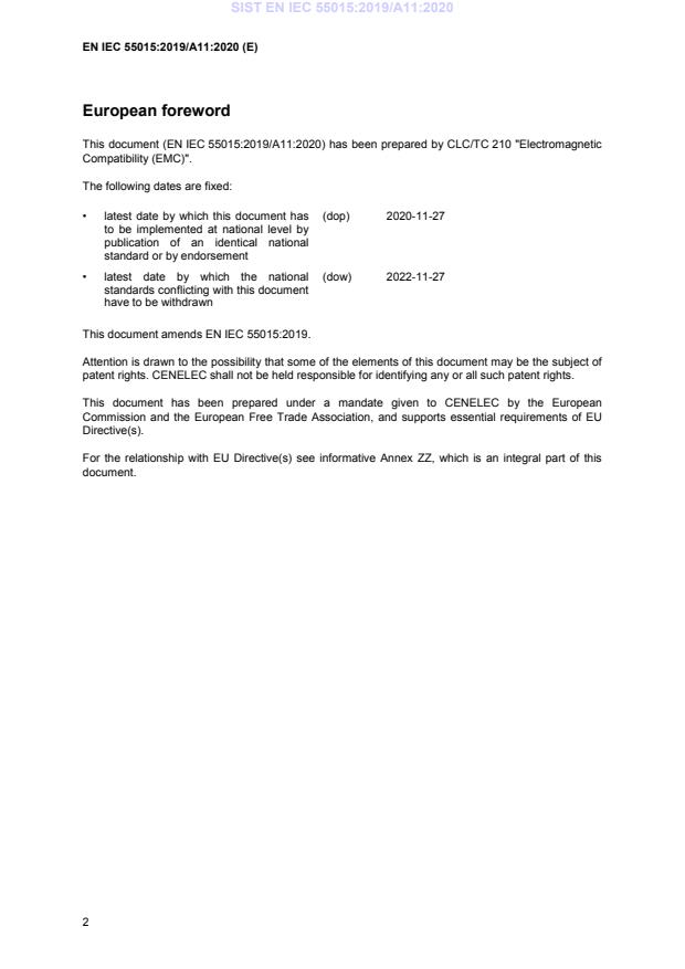 This document (EN IEC 55015:2019/A11:2020) has been prepared by CLC/TC 210 "Electromagnetic