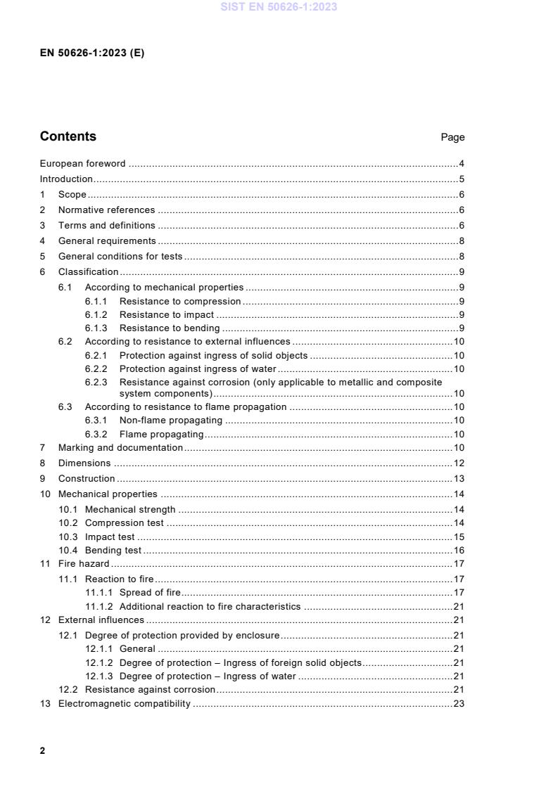 Keywords: EN 50626-1:2023, conduit systems buried underground, insulated electrical cables, communication cables, conduit fittings, compression test, impact test, bending test, ingress protection, fire hazard.
