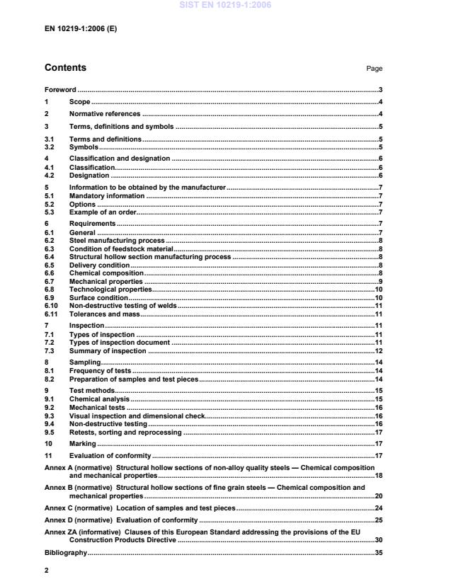 EN 10219-1:2006 - Cold formed welded structural hollow sections of non-alloy and fine grain steels - Part 1: Technical delivery conditions defines the technical delivery requirements for cold-formed, welded structural hollow sections (circular, square, rectangular) manufactured without subsequent heat treatment. It sets requirements for steel grades, delivery condition, chemical and mechanical properties, testing, inspection, marking and conformity assessment. (Tolerances, dimensions and sectional properties are covered in EN 10219-2.)