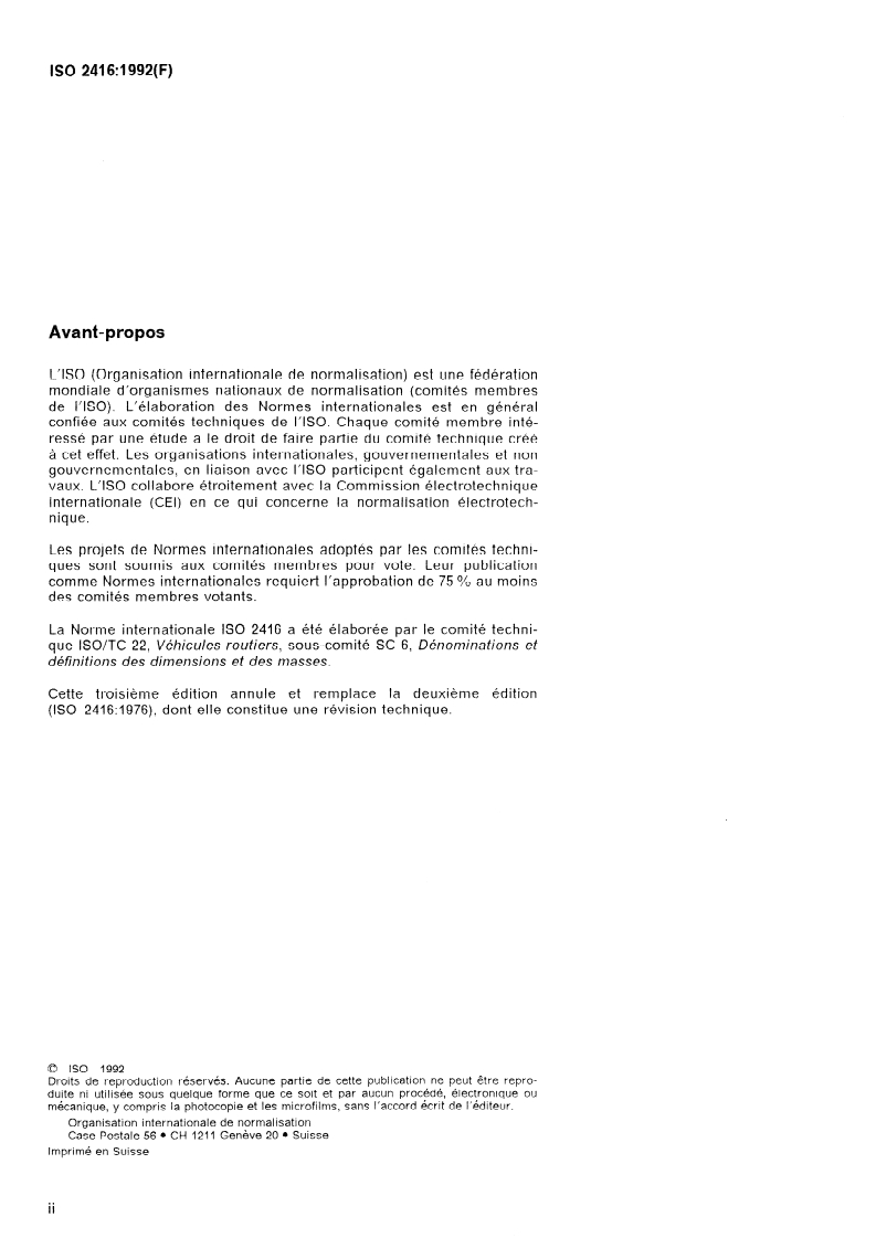 ISO 2416:1992 - Voitures particulières — Répartition des masses Released:5/7/1992