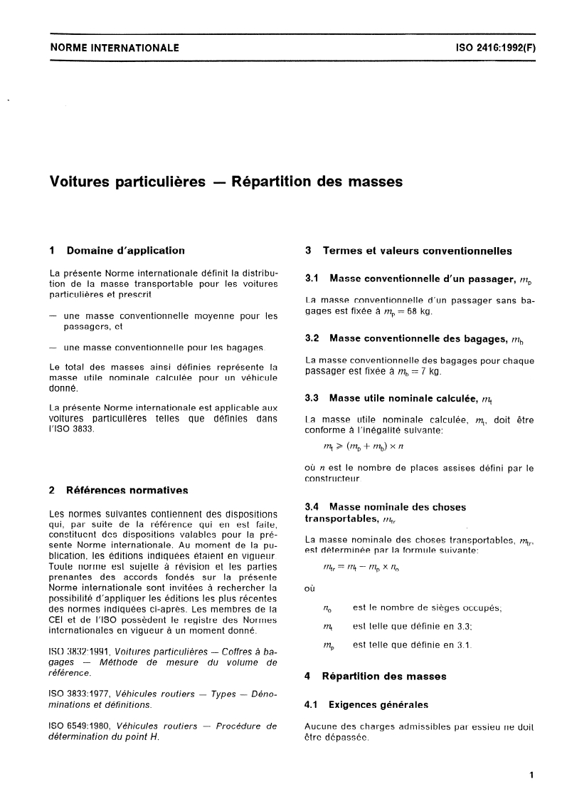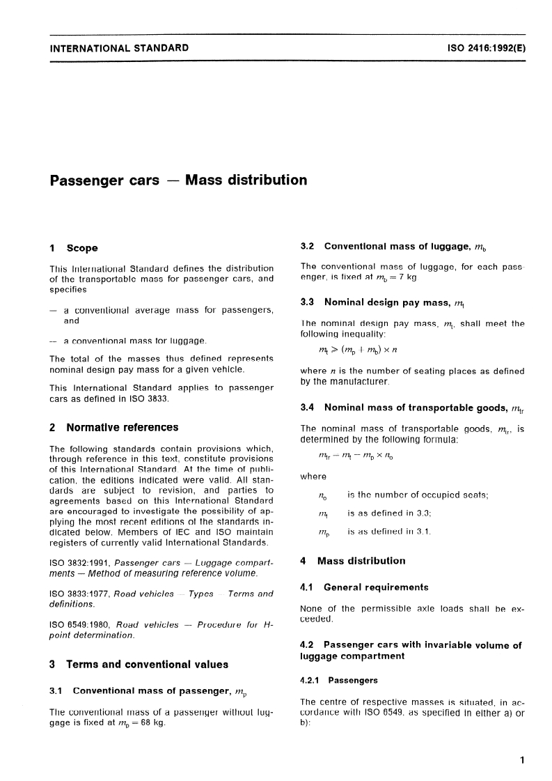 ISO 2416:1992 - Passenger cars — Mass distribution Released:5/7/1992