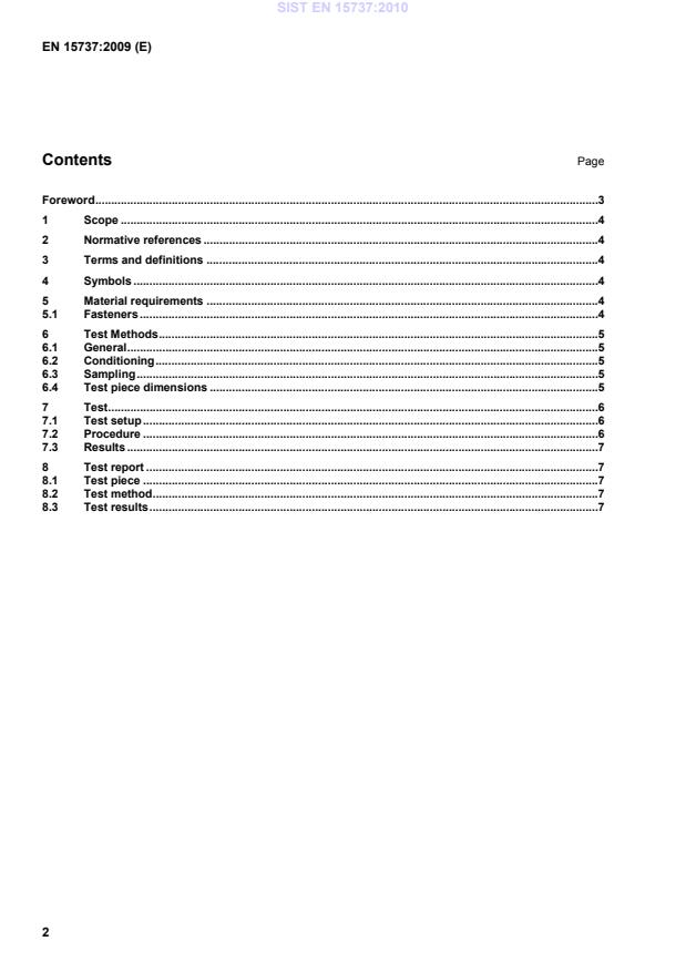 SIST EN 15737:2010 is a standard published by the Slovenian Institute for Standardization (SIST). Its full title is "Timber Structures - Test methods - Torsional strength and resistance to driving of screws". This standard covers: This standard specifies a test method to determine the torsional resistance to driving of screws in solid timber or glued laminated timber or other wood based materials.