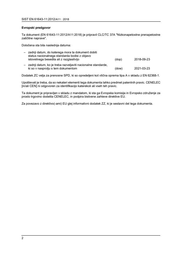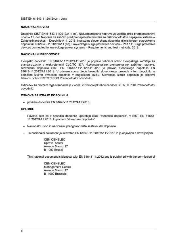 Slovensko dopolnilo SIST EN 61643-11:2012/A11:2018 je prevod evropskega dopolnila EN