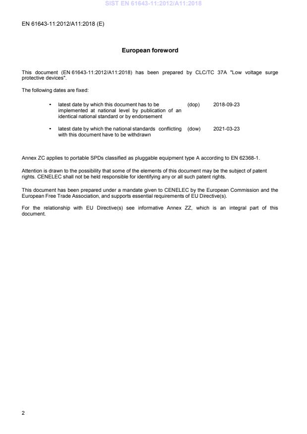 This document (EN 61643-11:2012/A11:2018) has been prepared by CLC/TC 37A "Low voltage surge