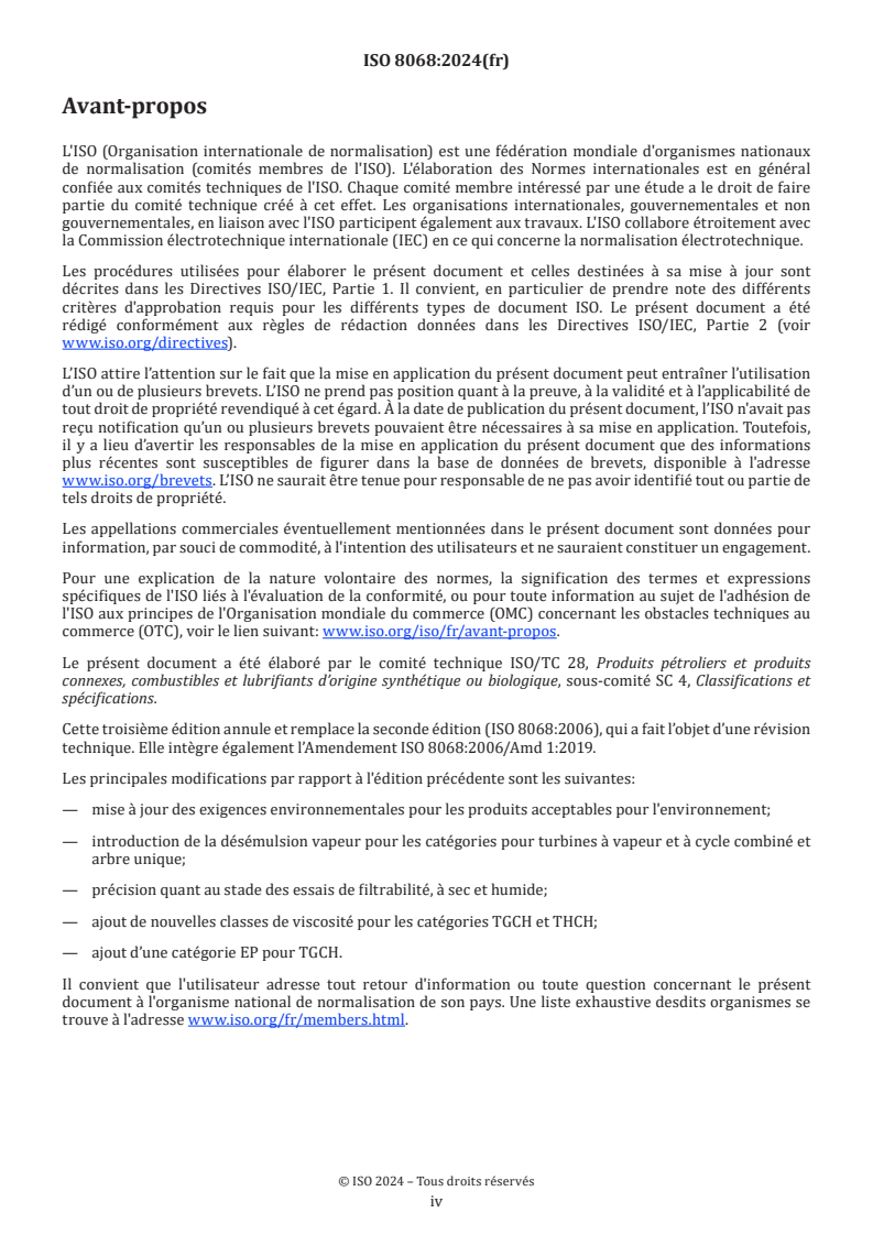 ISO 8068:2024 - Lubrifiants, huiles industrielles et produits connexes (classe L) — Famille T (Turbines) — Spécifications pour les huiles lubrifiantes pour turbines Released:24. 04. 2024