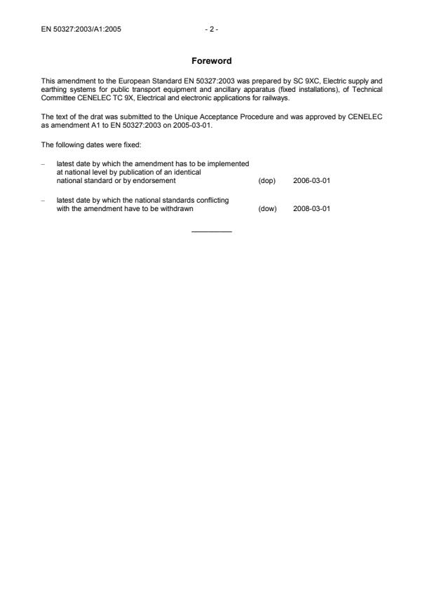 This amendment A1 modifies the European Standard EN 50327:2003; it was approved by CENELEC on